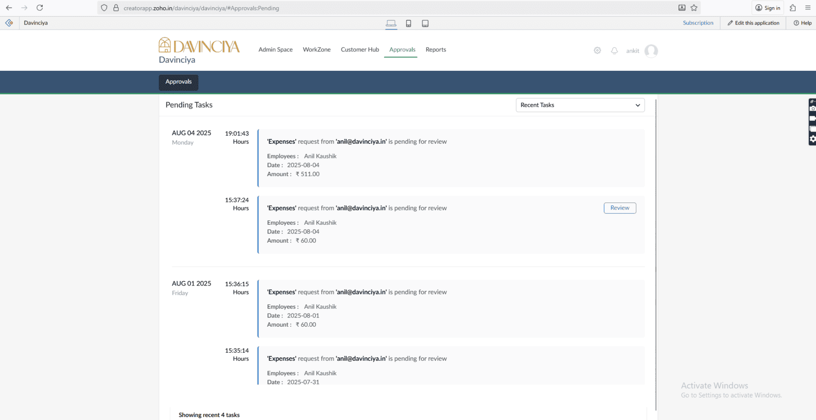 Expense submissions and approval workflows are handled entirely within the app, saving time and avoiding external tools.